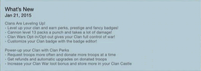 So now we have to ask ourselves, is this real? I’m split on this, but I’m leaning toward it not being real. The features really do seem to be what Supercell would release to the game- we all knew a level 13 cannon was coming and everyone has been begging for a war opt-out button. It also looks pretty legit from the location. On the other hand, it says the date is January 21, 2015, a month ago. Also, I don’t understand the “Get refunds and and automatic upgrades on donated troops”. It doesn’t seem like the kind of language Clash would use. There was also a forum exclusive sneak peek that mentioned healers and air bombs and this list has nothing about that on here. Anyways, we can speculate all we want, but the next sneak peek should tell us if this is in fact, true. Clash on guys!