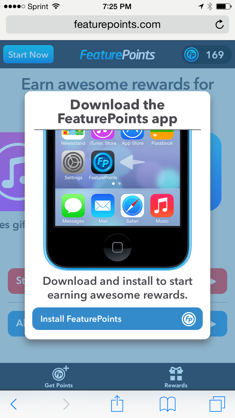 Once you opened the app, it will take you to another “Install now” screen. This is just so that FeaturePoints knows when you install apps so it can give you free iTunes/Google Gift Cards. Click Install now.