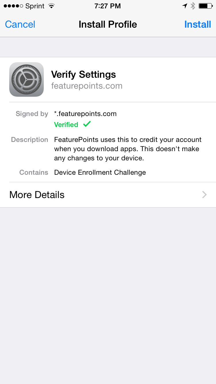 Clicking Install now will take you to your settings and then your mobile will verify FeaturePoints as a legitimate source. Head back to the FeaturePoints app.
