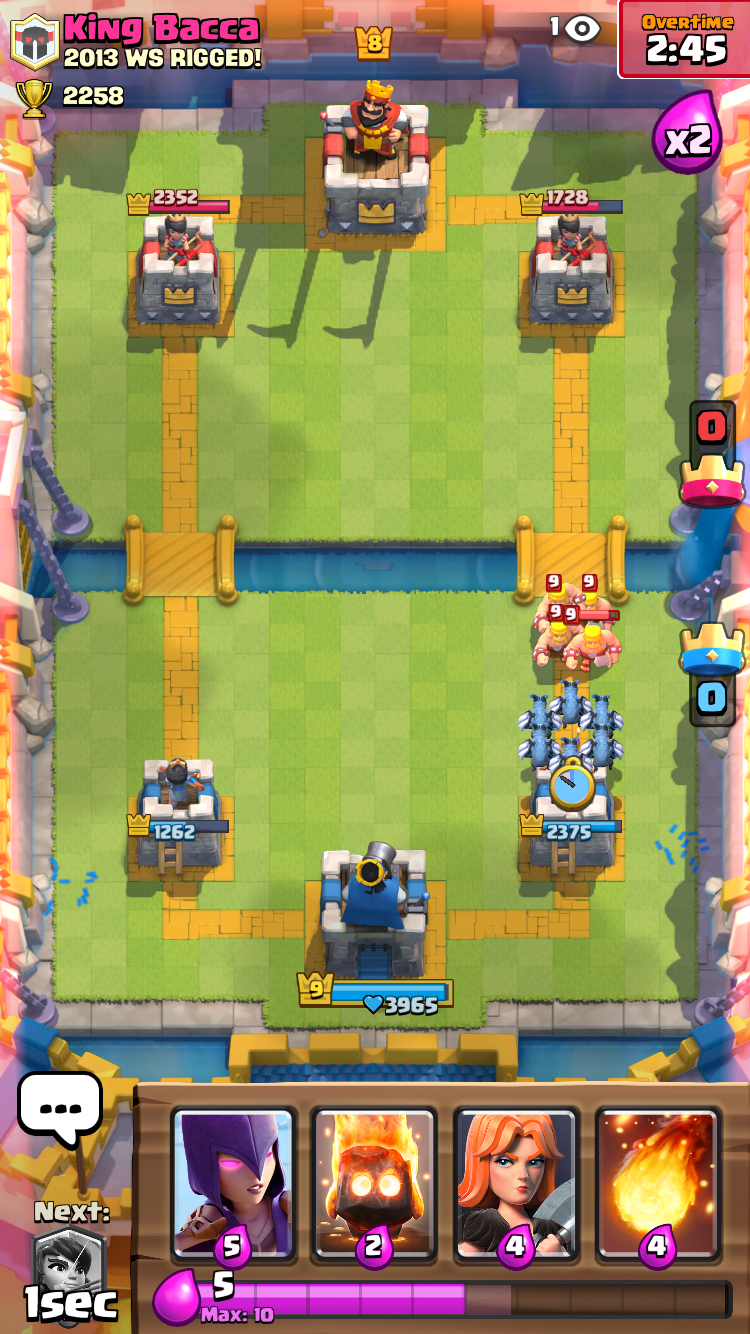 Fire Spirits- Fire spirits are extremely cheap, costing only two elixir and for that reason they aren’t ideal. They won’t fully eliminate the barbarians and they will get a few hits on the tower. Combined with spear goblins though, these are extremely effective.