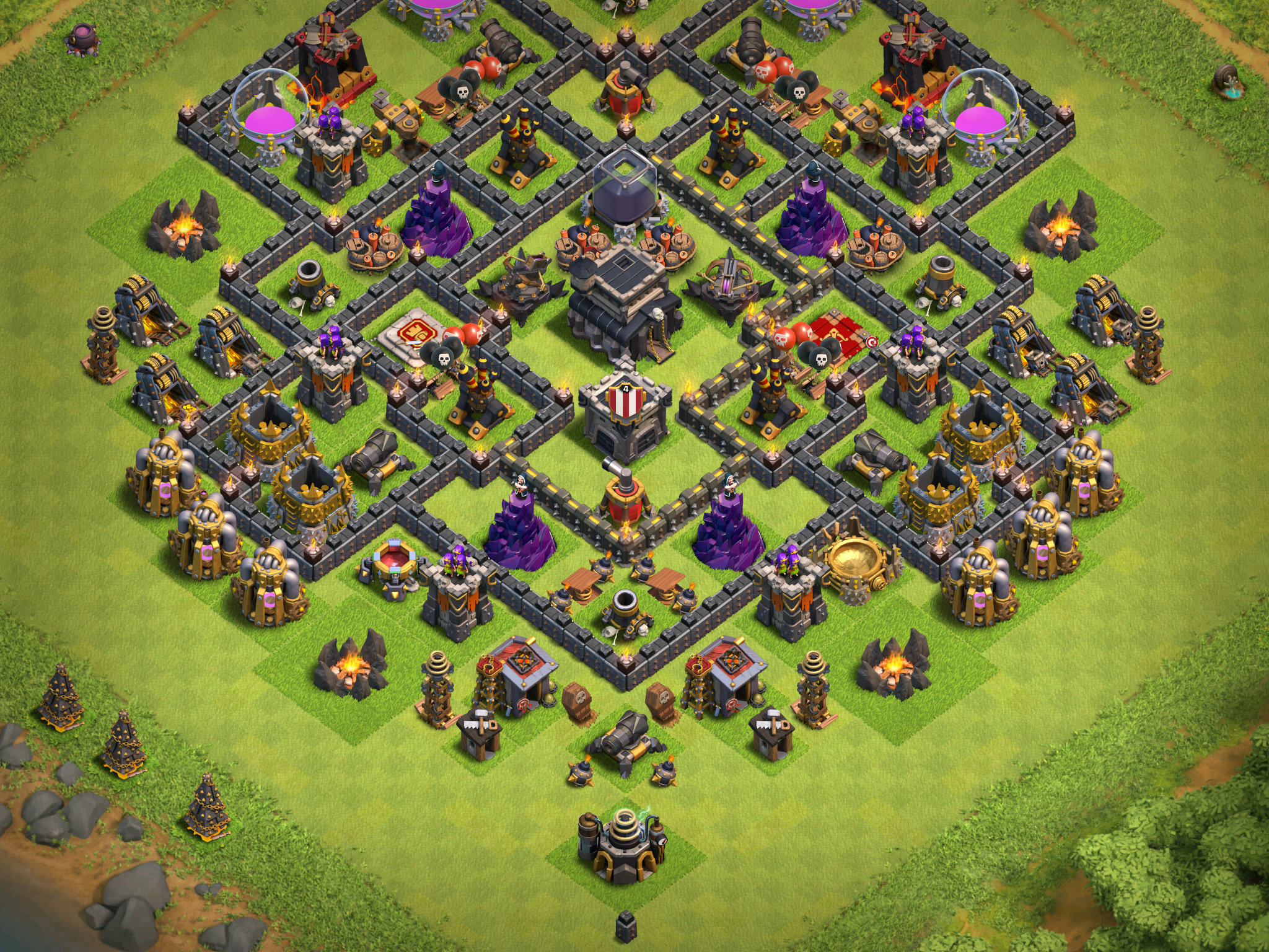 Notice how my teslas are very close to the middle of my base and my Town Hall. Opponents would see this base as an easy attack from the bottom, since it appears to not have as many defenses underneath. However, when he or she tried to attack my base, they would encounter 4 extra defenses where they didn’t know were located there.