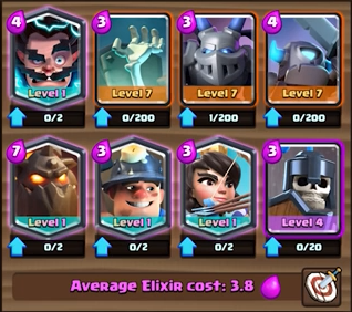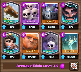 I made a really weird deck, and it wins about a quarter of the battles up here in royal arena as a level 8. Not good enough to stay here, but really fun if you have another deck that can keep you afloat in royal. Right now I am using a spawner deck for that purpose, because I just want to have fun making people rage quit.