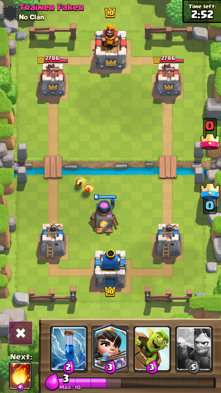 Princess: If you don’t have the furnace up and raring to go, then the only other play is to place the princess in the back, behind your king’s tower. This will provide you with an opportunity to push, as well as defending capability!