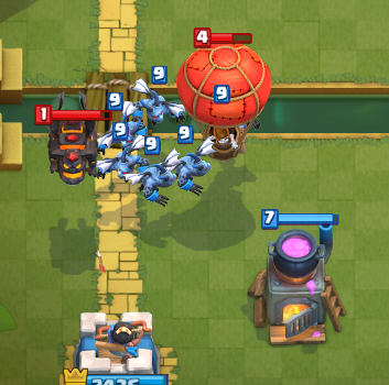 - Know when to push: If you don’t know when to push, it can completely ruin your game. Pushing is important when you have a clear elixir advantage and when your opponent’s zap is out of rotation.
