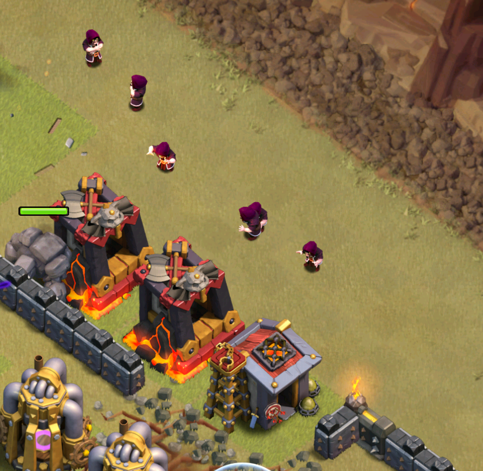 After your golems have started taking damage, you want to send in your wizards as soon as possible to start creating a funnel. Remember, heroes get distracted just as easily as valkyries do. Just remember to not clear the buildings for which you want your heroes to head towards!