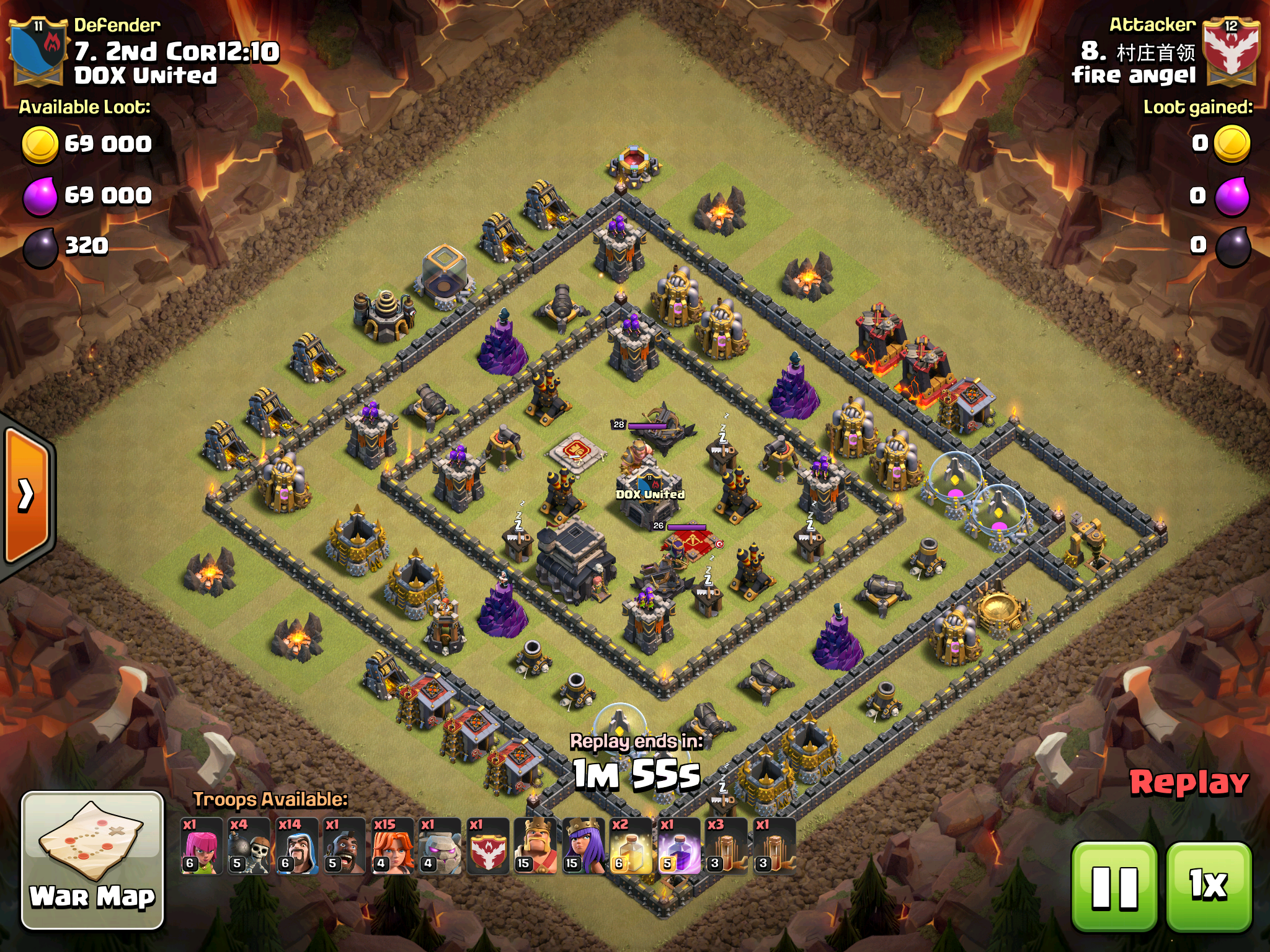 Once you do start approaching that three star, your valkyries and wizards probably missed a few buildings on the outside. But that’s good, because you wanted them to head towards the center of the base. Just play a few leftover wizards and clean up archers to take out the rest of the base.