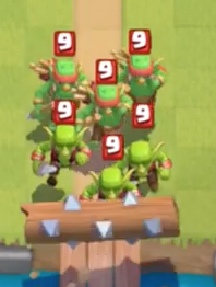 Now the level the goblin gang is, is the level of goblins and spear goblins. So a level 9, tournament standard goblin gang will spawn 3 goblins along with 3 spear goblins.