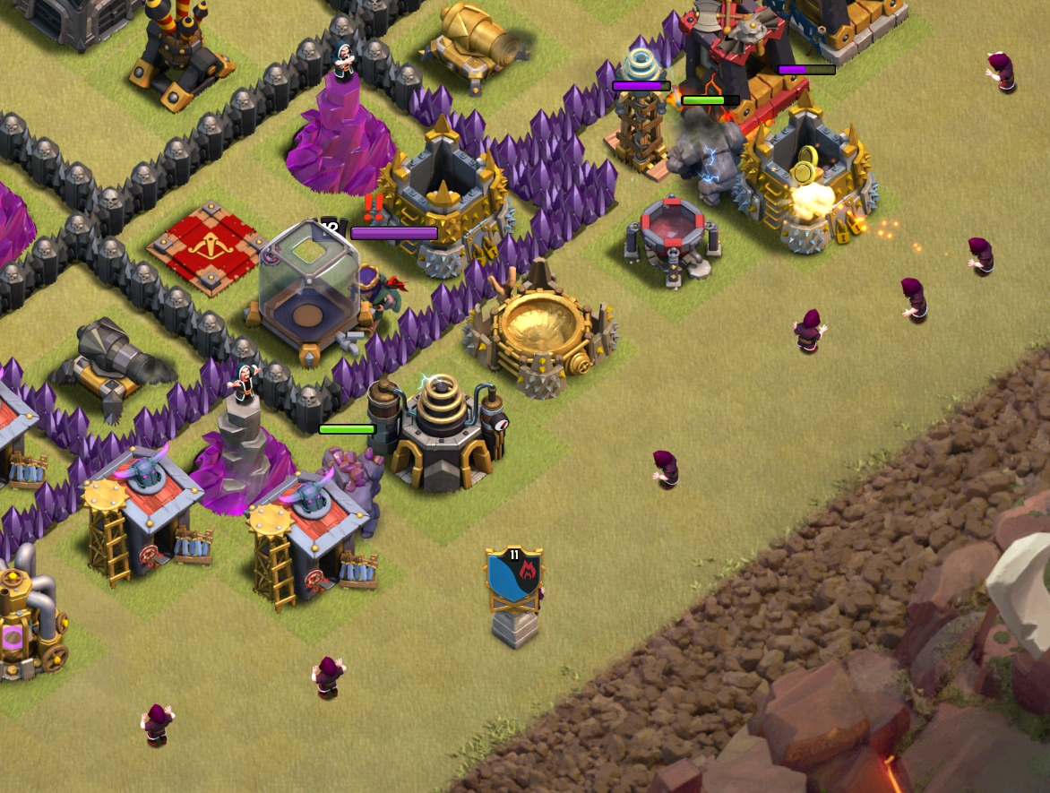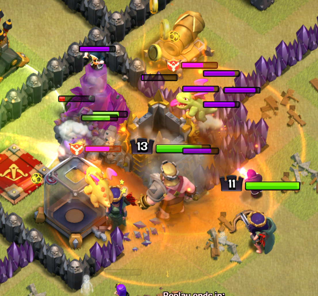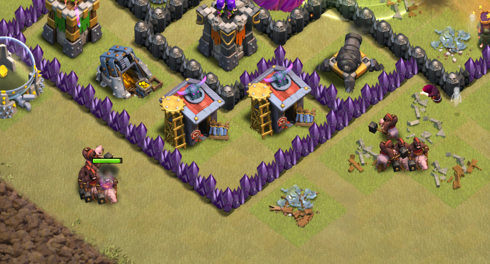 Basically, just play the leftover troops on buildings away from the hog riders where defenses can’t hit them. Since time is often a problem within GoHo and all hog rider raids, start your clean up as fast as possible, even if the hogs haven’t destroyed all the defenses yet.