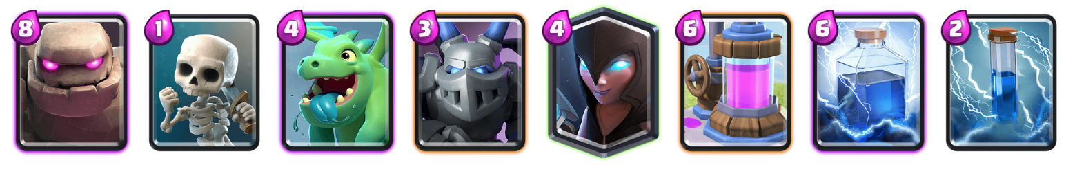 This last deck is about as weird as you can go in Clash Royale, combining a brand new card, a non damage spell, a pump, and the mirror. However, it works out well, especially if you can get the giant and night witch to the tower, under a heal spell. Most of the battle, you need to be defending, waiting until you have built up enough pumps to really put the hammer down on your game ending push. Use the mirror at your own discretion.
